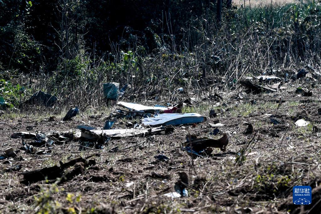 这是7月17日在希腊北部城市卡瓦拉附近农田拍摄的飞机残片。新华社发