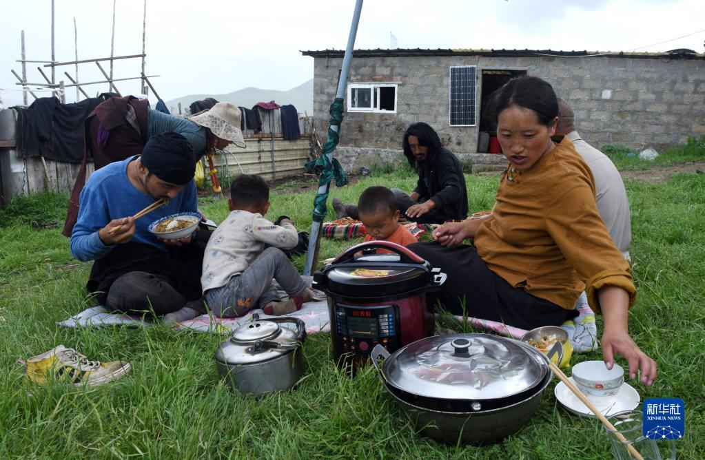 7月13日,巴周一家在吃午饭。 新华社记者 陈燮 摄