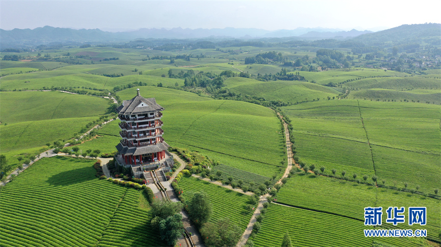 图为7月17日航拍的湄潭县永兴镇万亩茶海一景。新华网 周远钢 摄