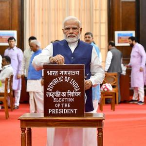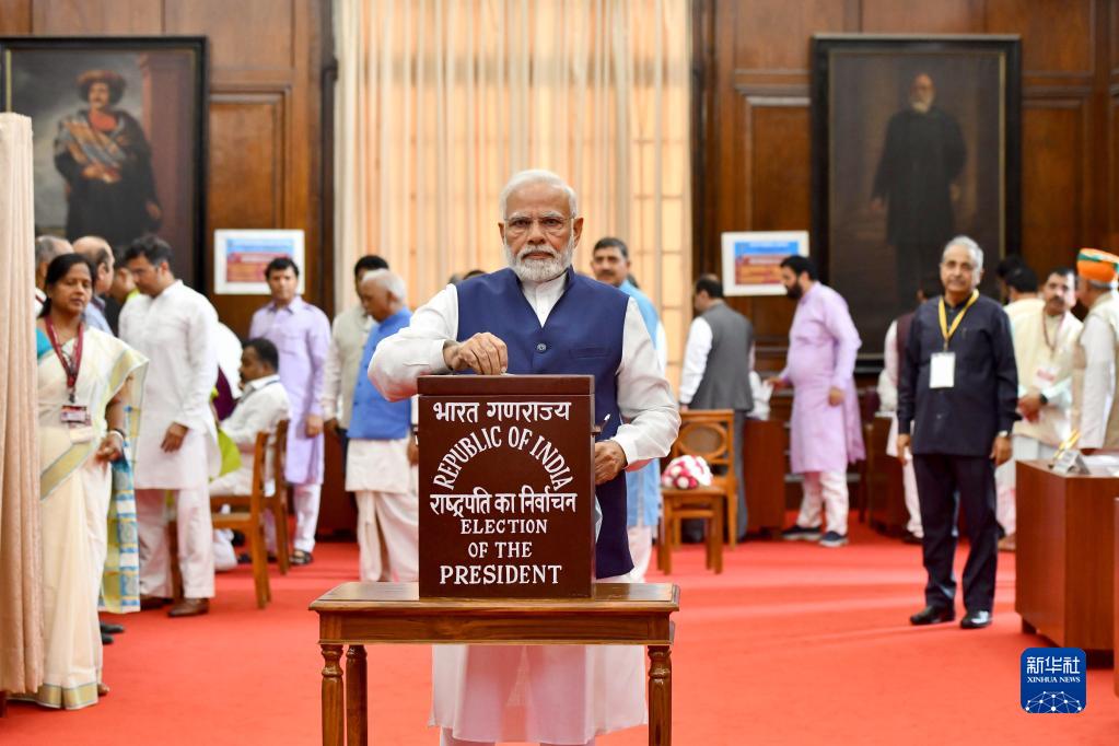 7月18日,印度总理莫迪在新德里参加总统选举投票。新华社/印联社