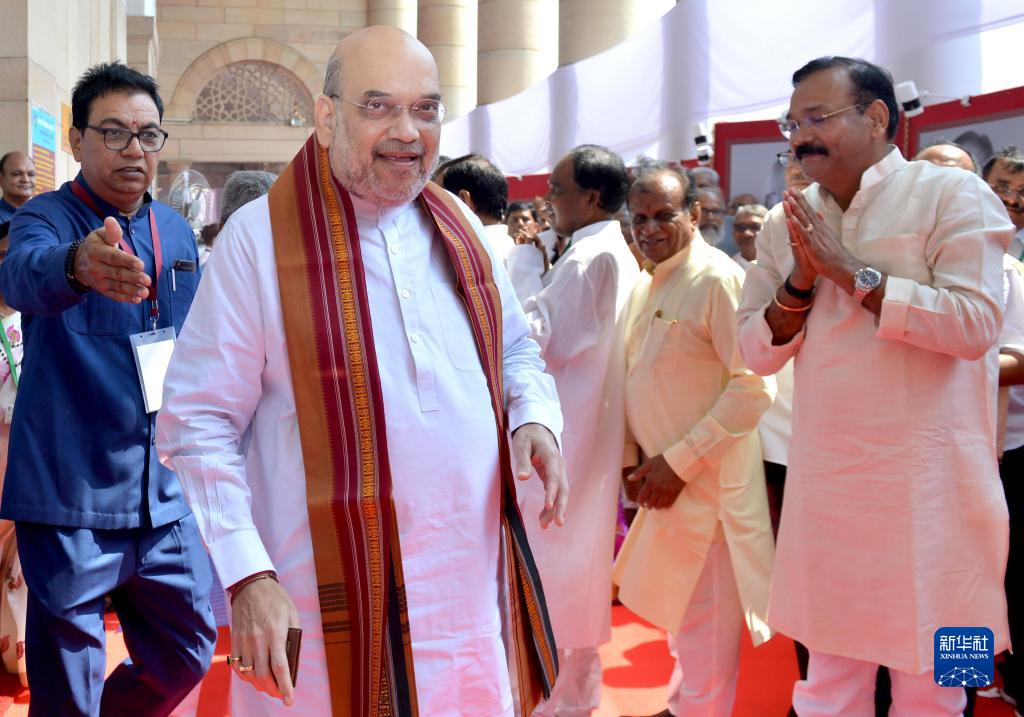 7月18日,印度内政部长阿米特·沙阿(前排左二)抵达新德里的投票现场。新华社/印联社