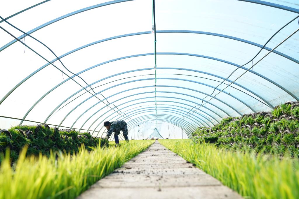 铁力市山泉农机农民专业合作社人员在进行水稻育秧(5月18日摄)。新华社记者王松 摄
