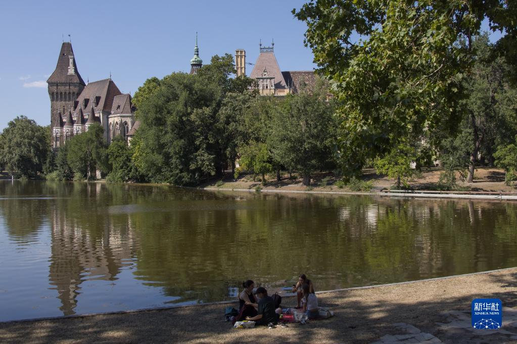 7月19日,在匈牙利布达佩斯,人们在城市公园湖边树荫下乘凉。新华社发(弗尔季·奥蒂洛摄)