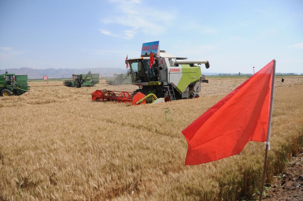 据了解,为确保小麦归仓,巴彦淖尔市共组织1000多台收割机保障麦收工作顺利进行,预计在7月底完成。