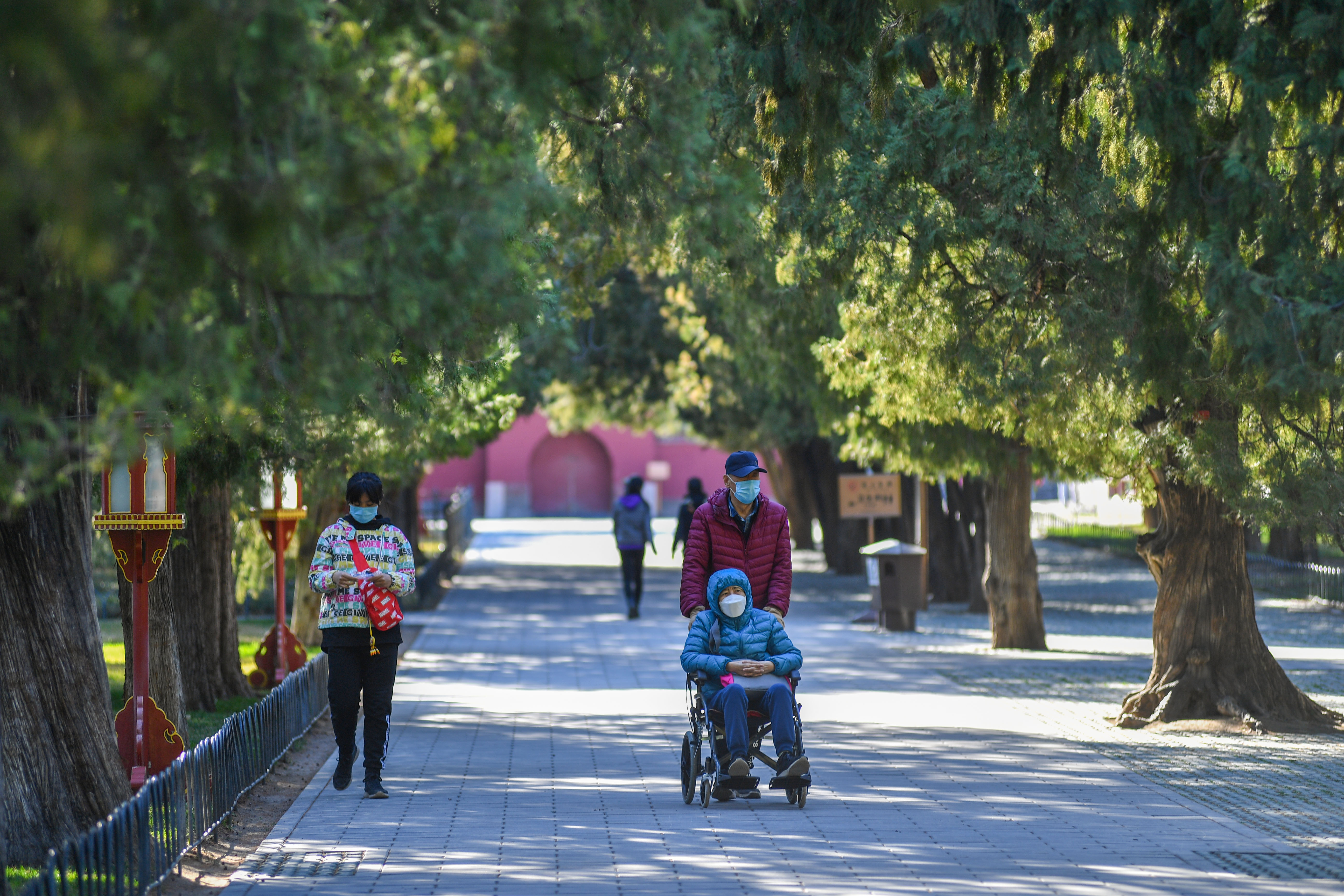 晴朗天气里,市民在天坛公园游园散心,北京中轴线的保护离不开他们的参与。
