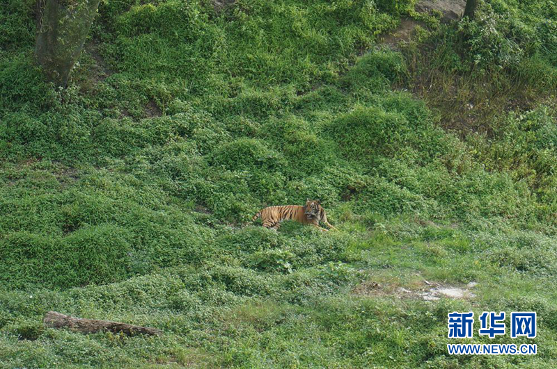 记者在梅花山华南虎繁育研究所拍摄到的华南虎。新华网记者刘琼 摄