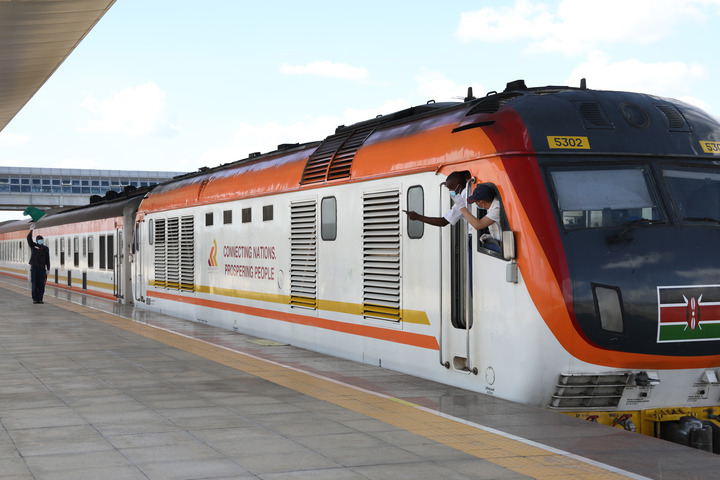 2021年11月17日,在肯尼亚蒙内铁路内罗毕站,中国与肯尼亚司机准备发车。新华社记者董江辉摄