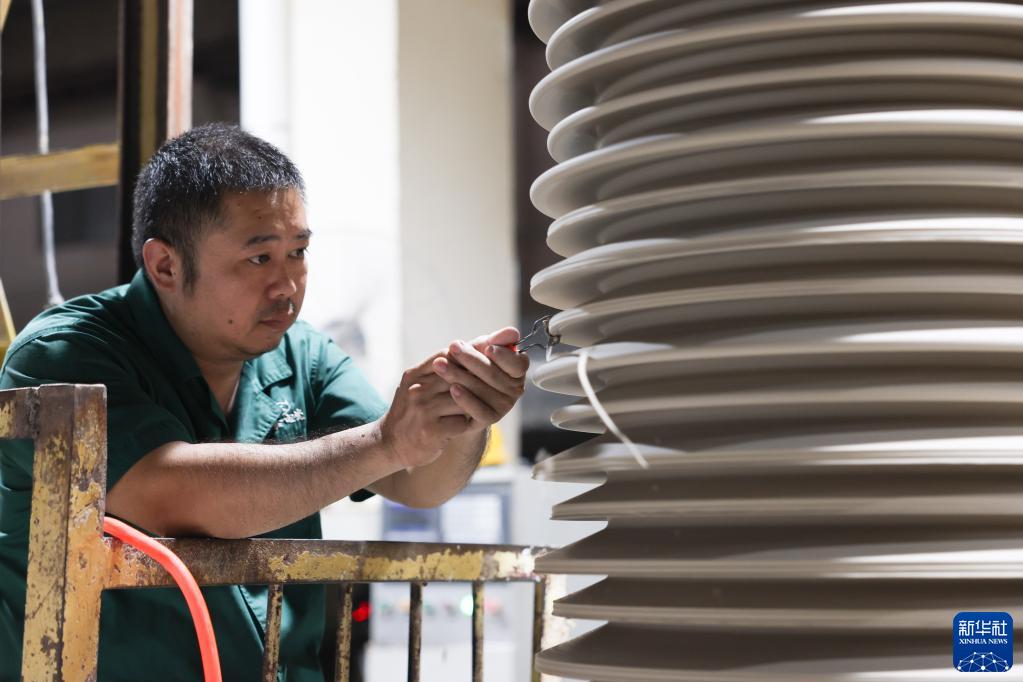 这是7月7日在醴陵华鑫电瓷科技股份有限公司拍摄的空心瓷绝缘子。新华社记者 薛宇舸 摄