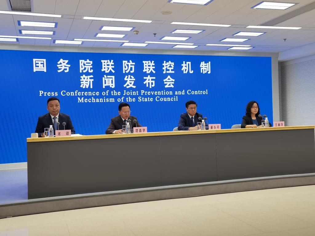 国务院联防联控机制新闻发布会现场。(新华社记者 宋晨 摄)