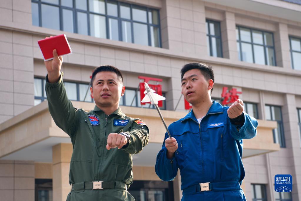 空军首批歼-10飞行学员在石家庄飞行学院某旅演练场与教官进行协同(2021年9月9日摄)。新华社发(李敏 摄)