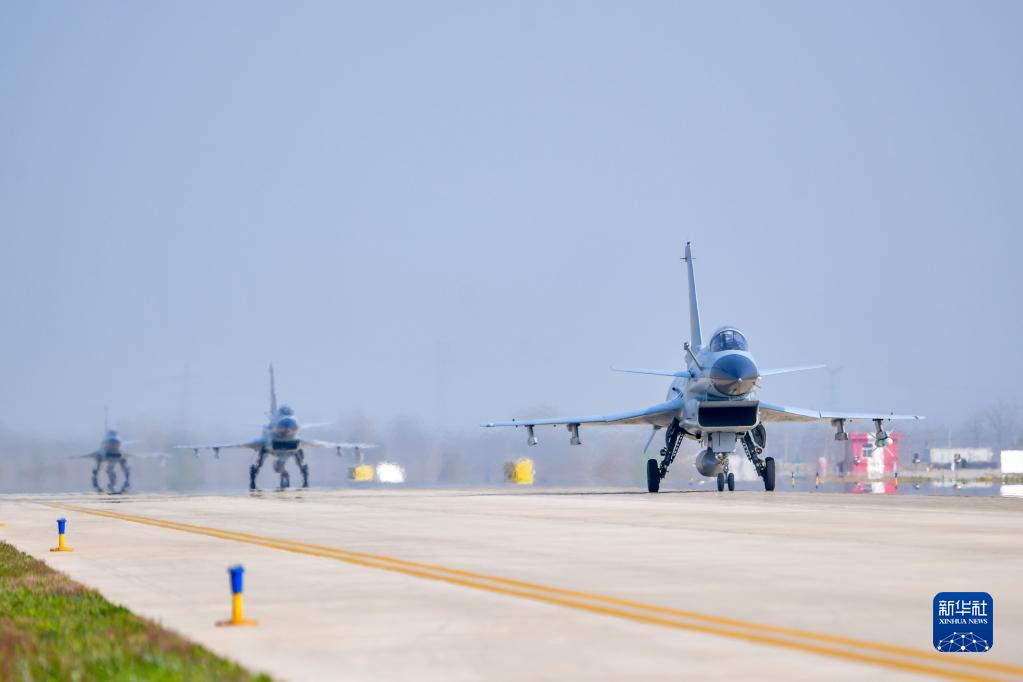 空军首批歼-10飞行学员在石家庄飞行学院某旅组织多机编队飞行训练(2022年3月29日摄)。新华社发(李敏 摄)