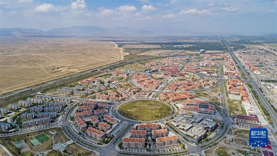 这是宁夏银川市永宁县闽宁镇新镇建设全景(2019年9月3日摄,无人机照片)。新华社记者 王鹏 摄