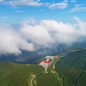 位于宁夏固原市隆德县境内的六盘山红军长征纪念亭(2018年8月29日摄,无人机照片)。新华社记者 王鹏 摄