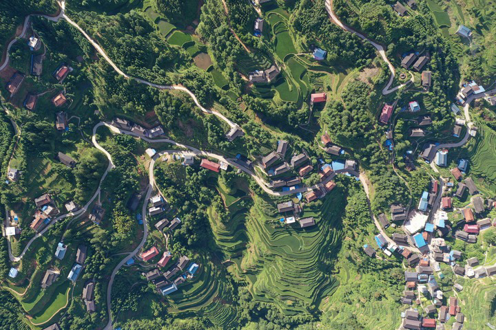 这是广西融水苗族自治县杆洞乡党鸠村的村屯公路(7月22日摄,无人机照片)。新华社记者 黄孝邦 摄