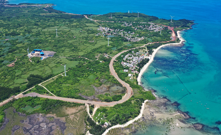 海南环岛旅游公路儋州段施工现场(无人机照片)。新华社记者 郭程 摄