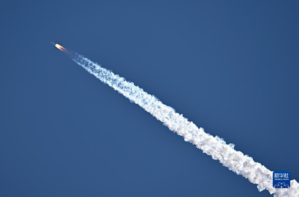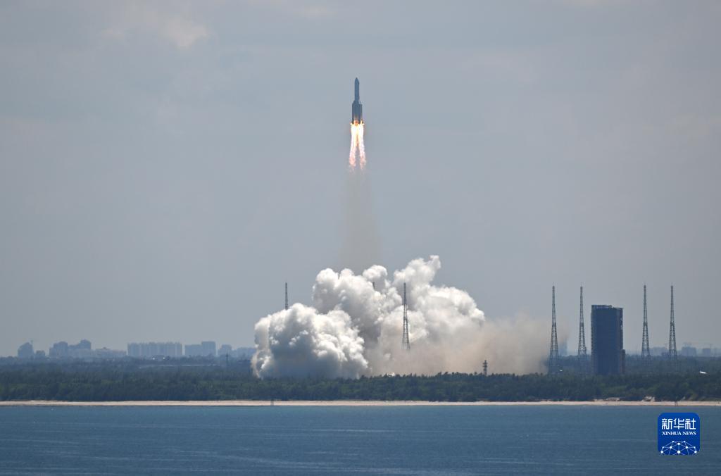 7月24日,搭载问天实验舱的长征五号B遥三运载火箭,在我国文昌航天发射场点火发射。新华社记者 郭程 摄