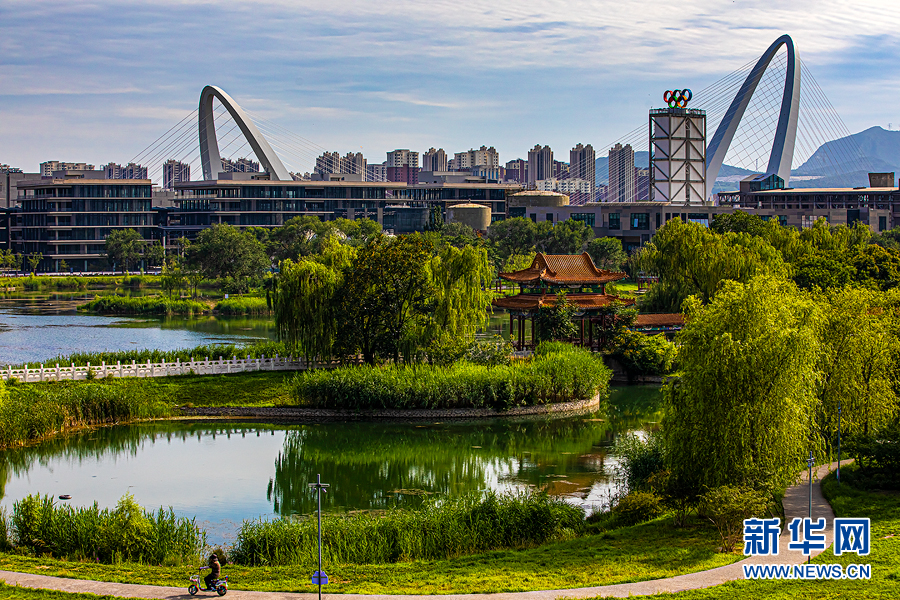 图为远眺首钢滑雪大跳台。新华网 毕尚宏 摄