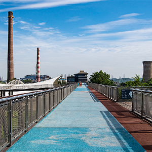 首钢高线公园又称“高空步道”,全长约10公里,利用现状架空工业管廊及通廊系统改造而成,作为首钢园区“地下-地面-空中”三级立体慢行系统的重要组成部分, 在传承工业特色风貌的同时提供不同层次的观景、休憩和健身体验。