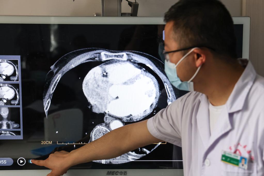 6月7日,贵州省龙里县人民医院呼吸科主任田广通过远程诊断系统查看患者的医学影像资料。新华社记者 欧东衢 摄