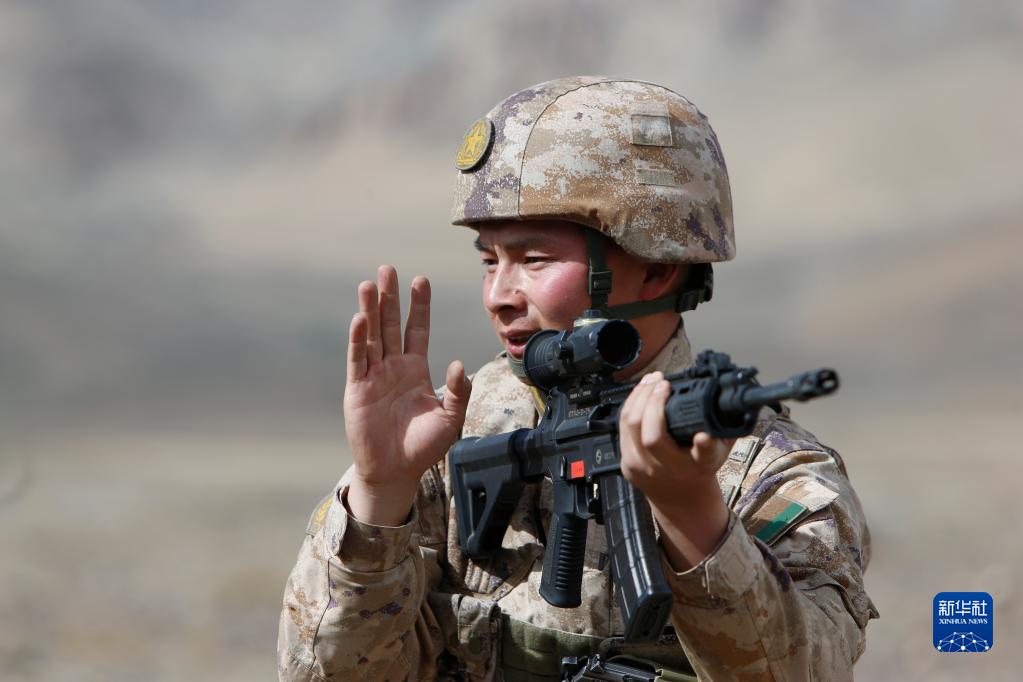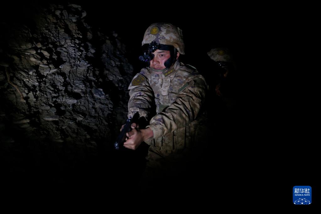 新疆军区某红军师“攻如猛虎英雄连”连长刘威带领官兵开展夜间实战化训练(2022年7月5日摄)。新华社发(李康 摄)