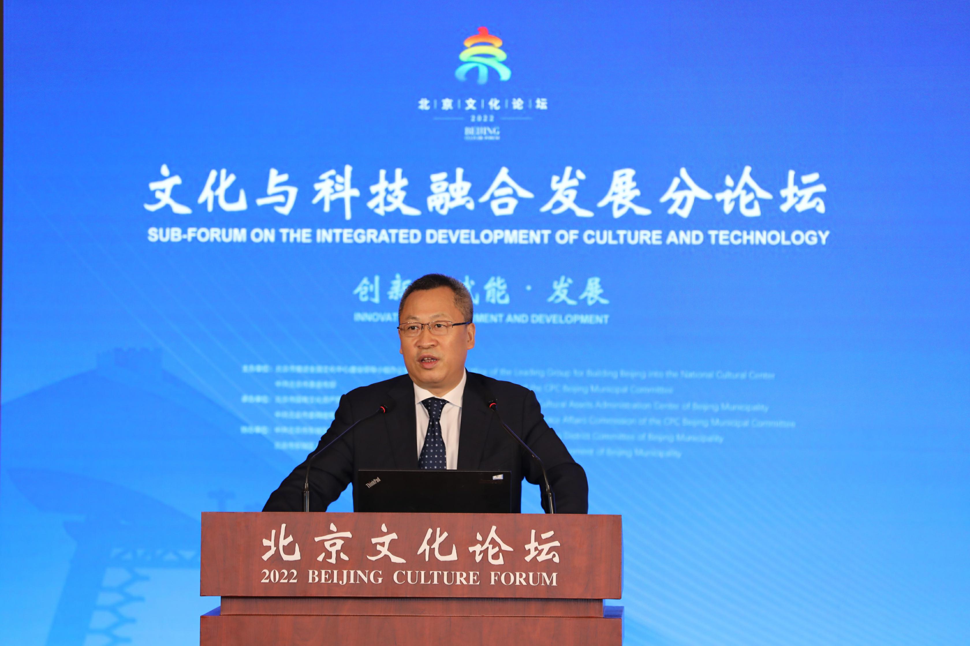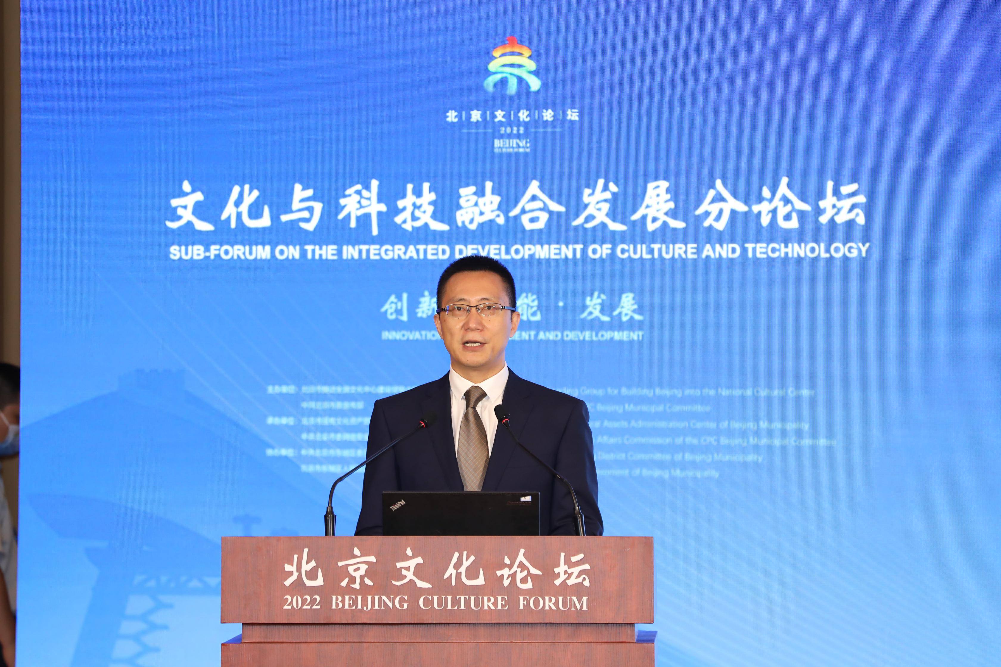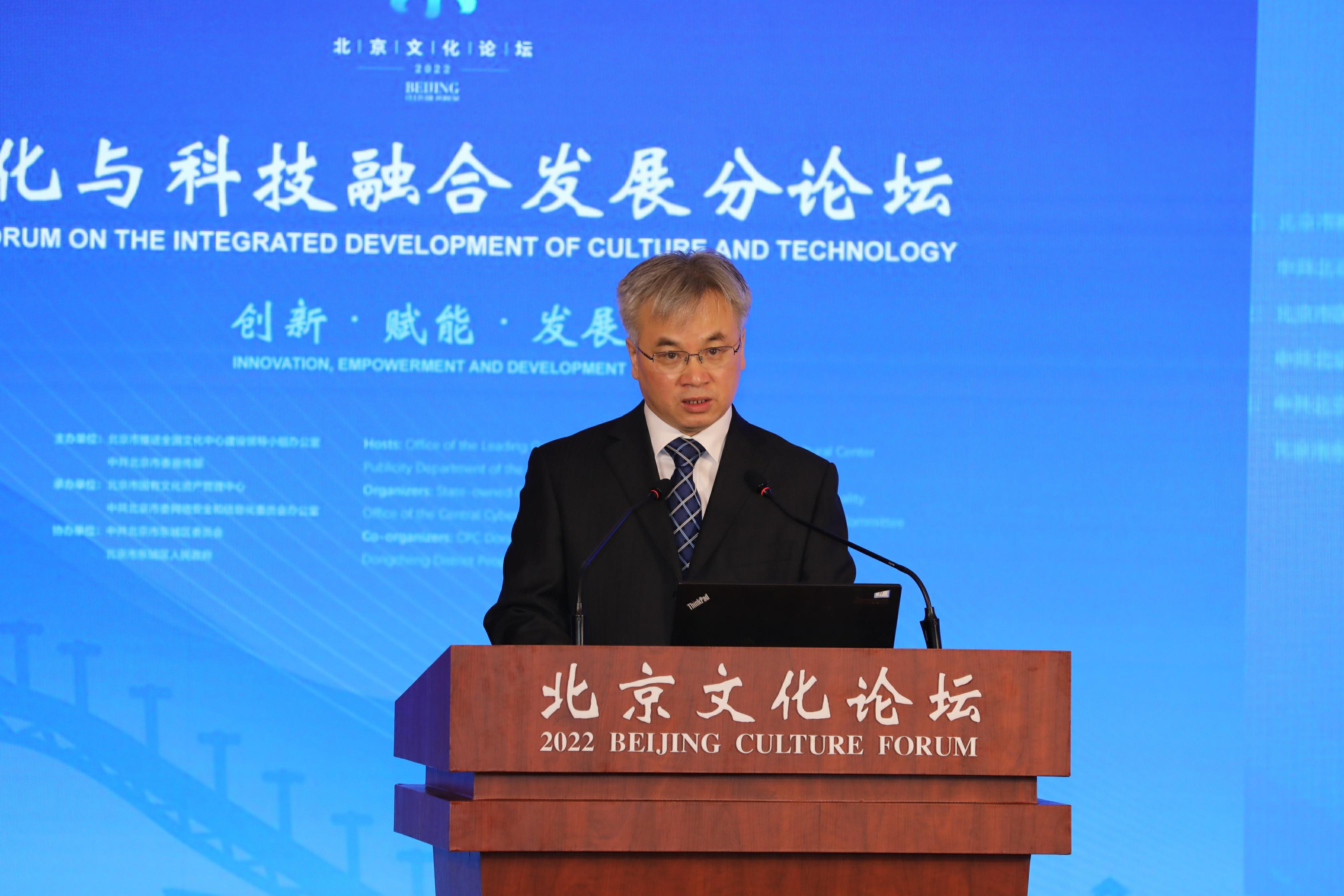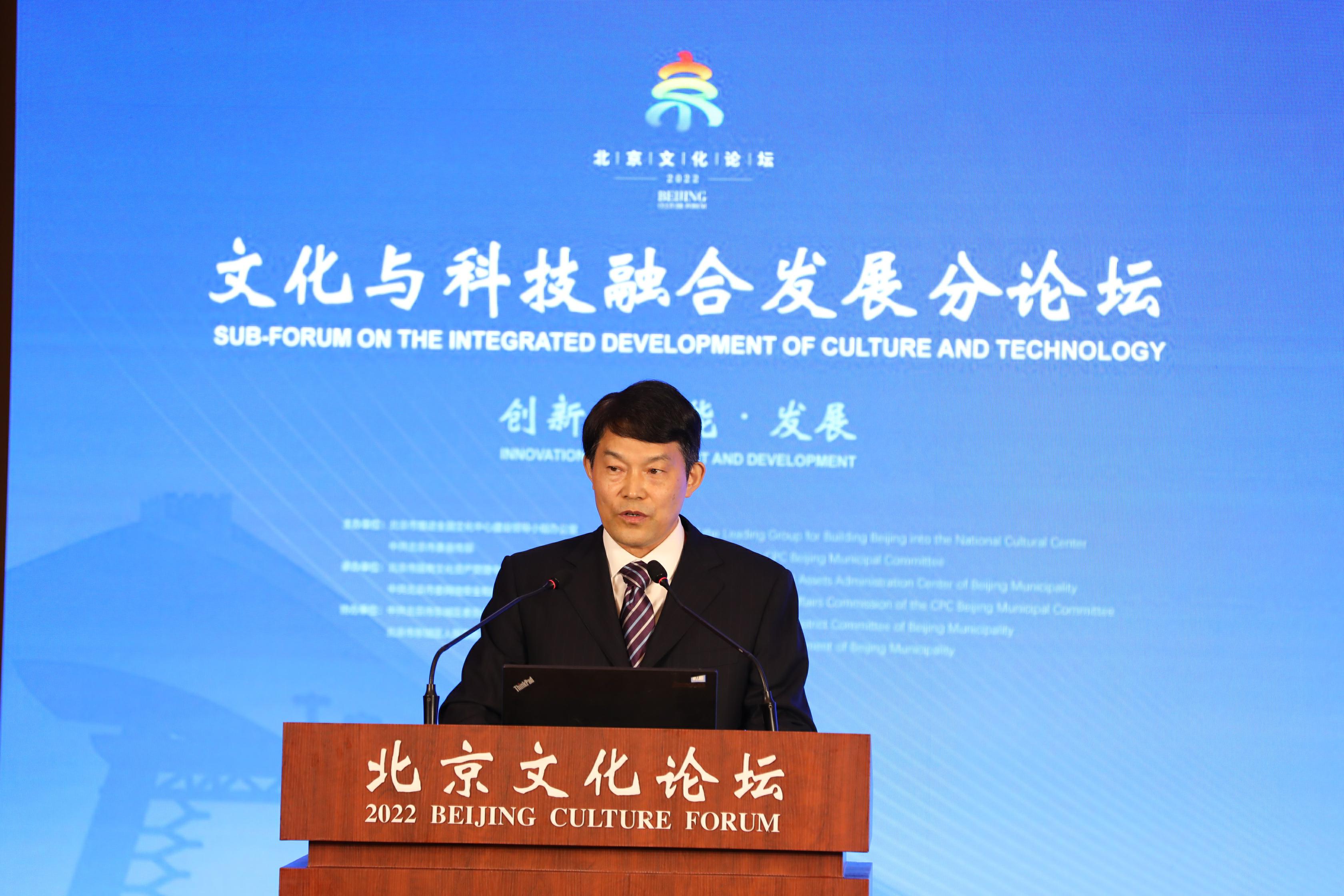 7月26日,北京文化论坛“文化与科技融合发展分论坛”在北京举办。北京市文资中心党委书记、主任刘绍坚出席分论坛并发言。新华网 李昊泽 摄