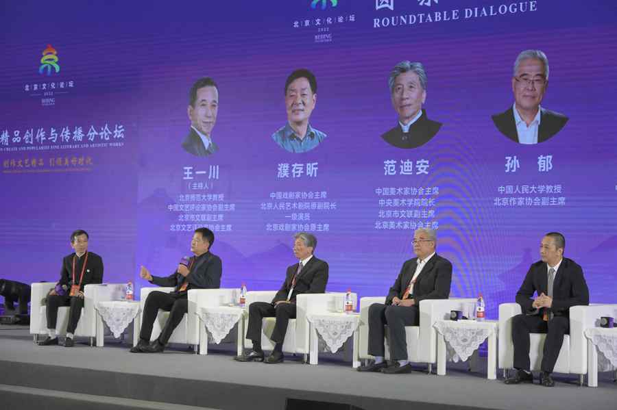 当日,首届北京文化论坛“文艺精品创作与传播”分论坛在京举办。分论坛以“创作文艺精品 引领美好时代”为主题,与会嘉宾通过嘉宾发言和圆桌对话等形式,共探新时代如何创作生产更多优秀的文艺作品。新华网 毕尚宏 摄