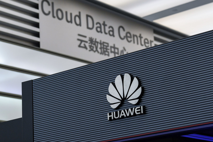 2019年11月24日拍摄的华为展厅内的企业logo 新华社记者 梁旭 摄