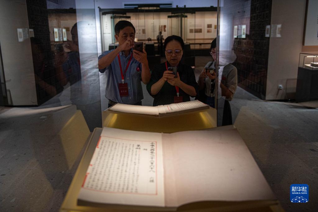 7月30日,观众在中国国家版本馆杭州分馆参观展品。