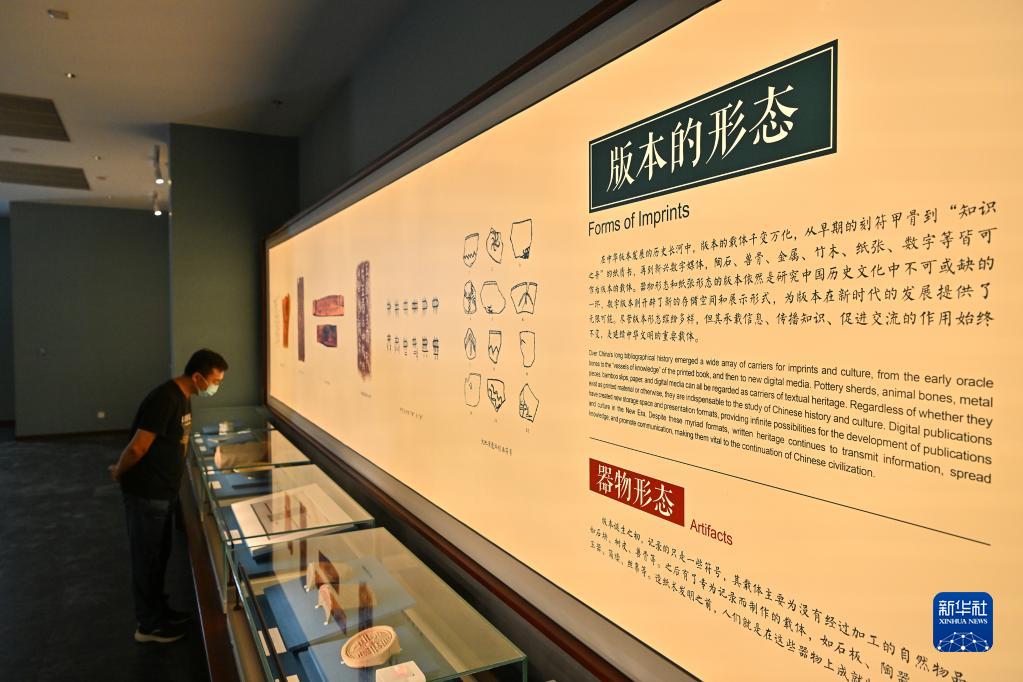 7月30日,一名观众在中国国家版本馆中央总馆的展厅内参观。
