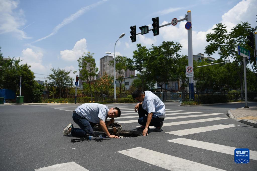 7月15日,张杨(左)与同事郭相东在合肥市瑶海区一处路段进行常态化巡检。