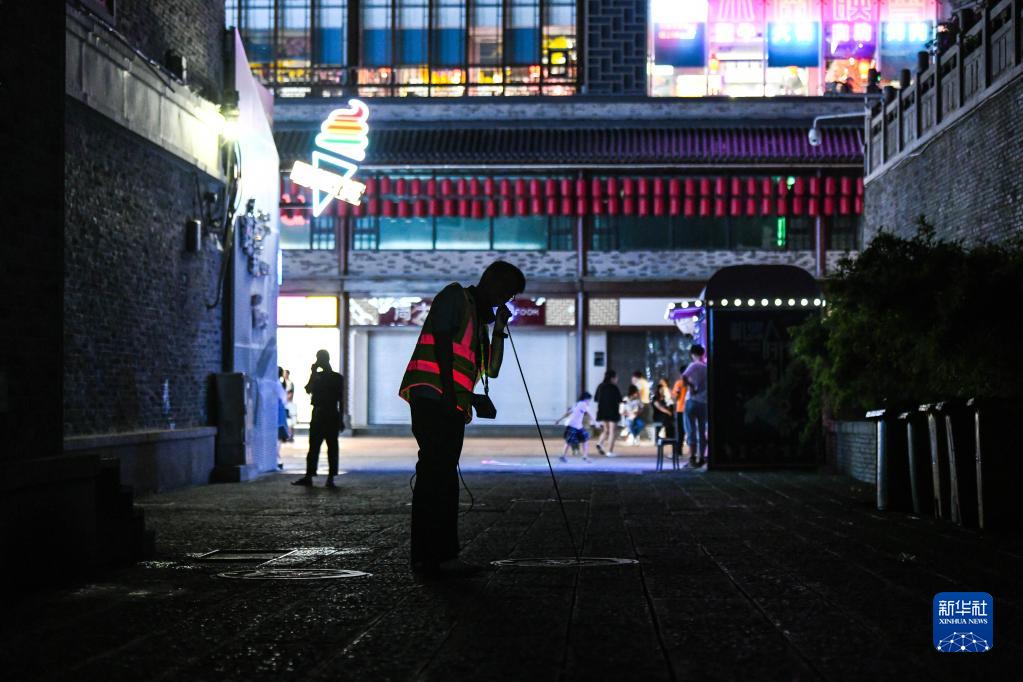 7月21日,张杨在合肥市淮河路步行街附近小巷里进行听漏作业。