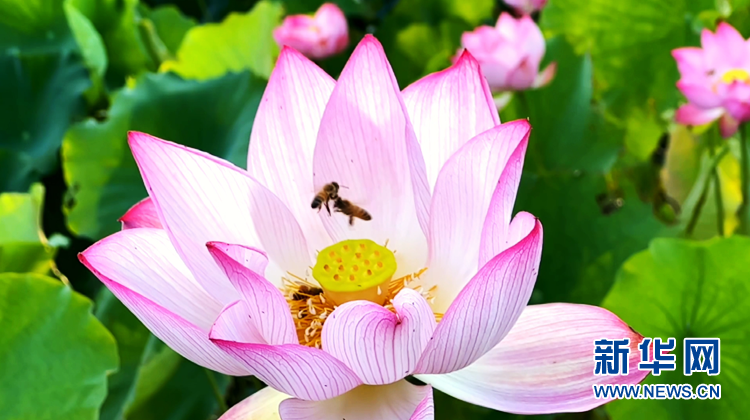 文峰公园荷花绽放。新华网发(徐红梅 摄)