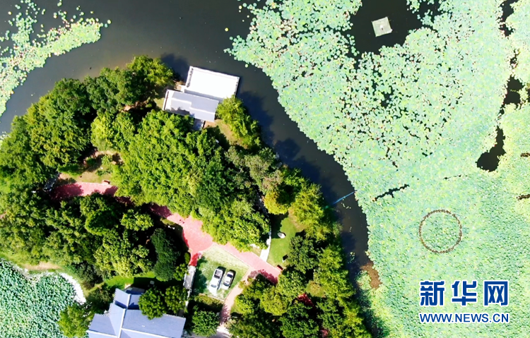 无人机航拍公园一角。新华网发(徐红梅 摄)