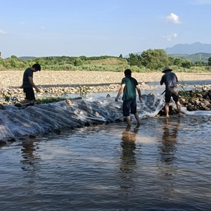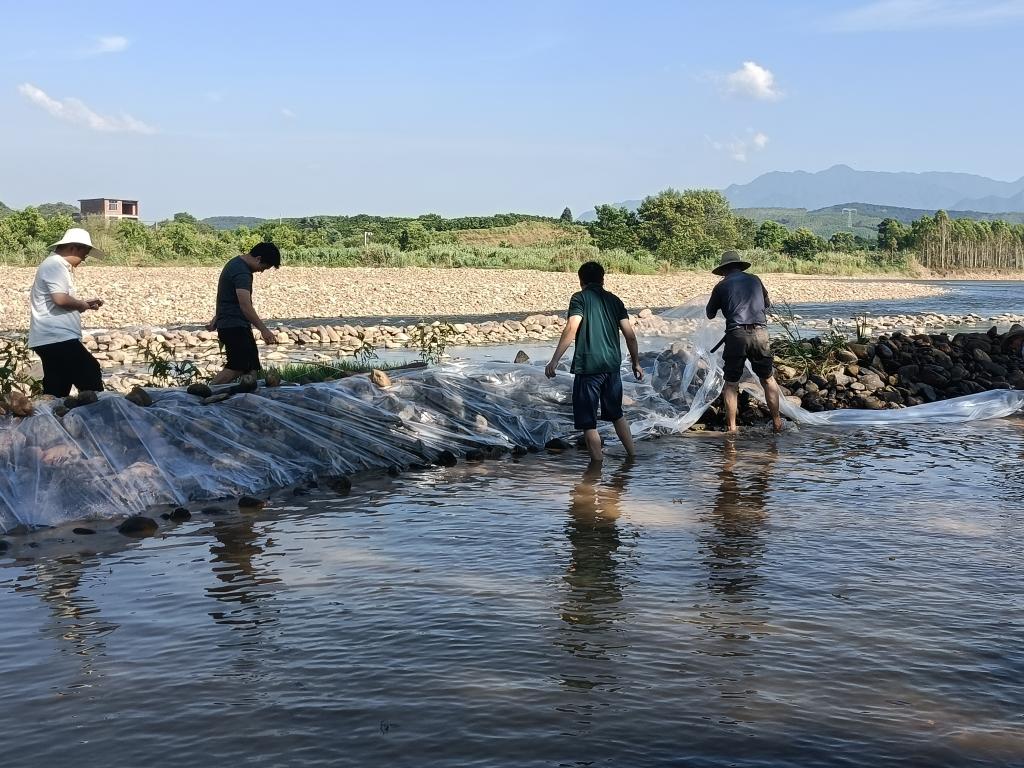 湖南省江永县桃川镇邑口村,干部群众正在河里拦水抗旱。(受访者供图)
