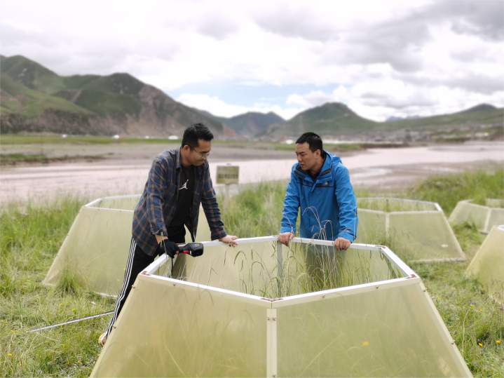 “模拟增温试验”是国际上观测不同增温状态下植物生态系统变化的主要研究方式。这项实验通过在草地上安装不同高度的温箱,布设传感器观测箱内温度,模拟形成不同增温条件,从而分析以高原嵩草为优势种的高寒草甸植被对气候变暖的响应。