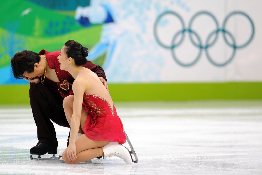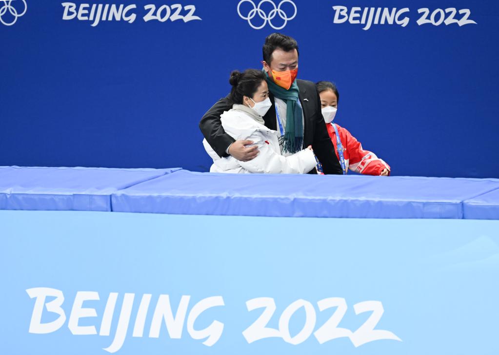 申雪和赵宏博在北京冬奥会花样滑冰双人滑比赛后庆祝