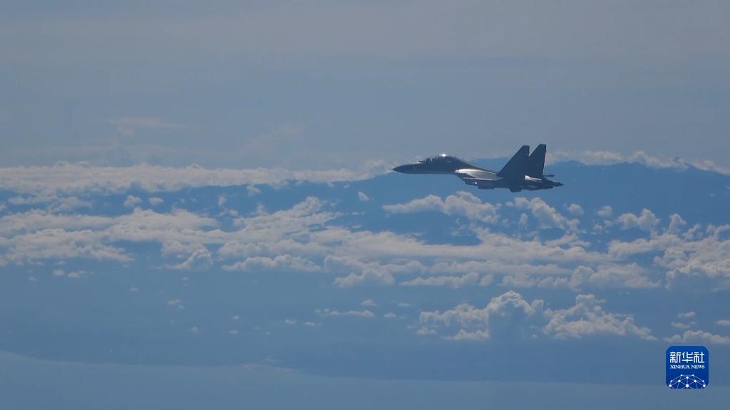 8月5日,中国人民解放军东部战区空军赴台岛周边实施演训任务。这是战机在执行抵近慑压任务(视频截图)。新华社发