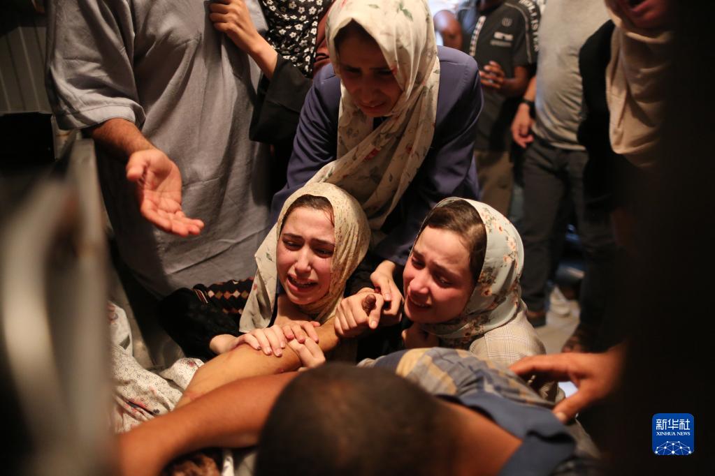 8月5日,人们在加沙城一所医院哀悼在空袭中遇难的亲人。新华社发(里泽克摄)