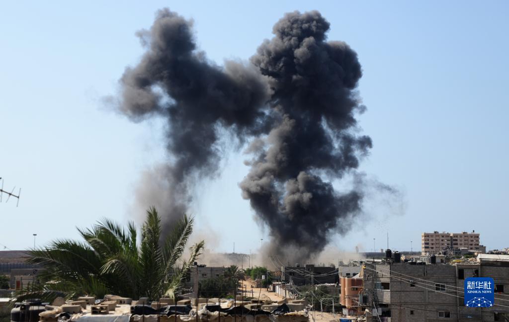 8月7日,加沙地带南部城市拉法遭遇以色列空袭后升起浓烟。新华社发(哈立德·奥马尔摄)