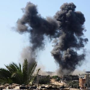 8月7日,加沙地带南部城市拉法遭遇以色列空袭后升起浓烟。