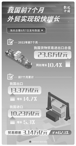 商务部研究院研究员周密也对记者表示,前7月进出口增长进一步加快,增速比前6个月提高一个百分点。“在全球贸易出现较大不稳定情况下,这一表现可谓相当突出,同时也充分说明中国外贸实力强、韧性足。”