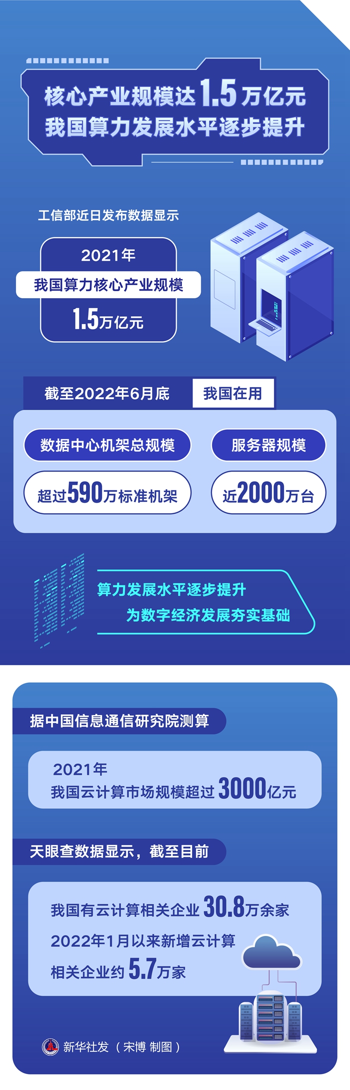 新华社北京8月8日电 题:核心产业规模达1.5万亿元,我国算力发展水平逐步提升