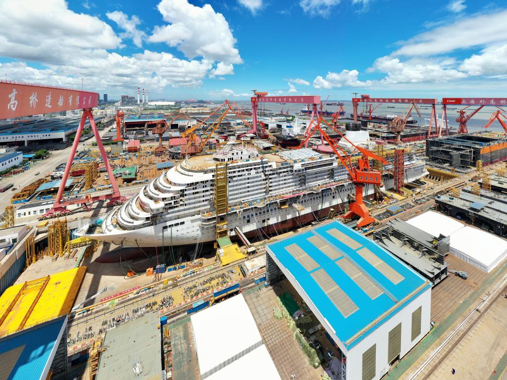 国产大型邮轮首制船建造场景。(受访单位供图)