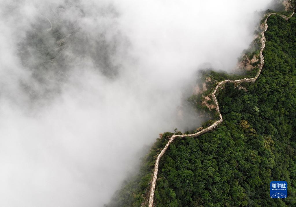 8月9日拍摄的金山岭长城云海景观(无人机照片)。