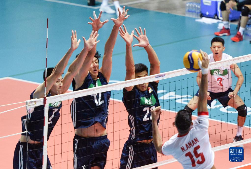 当日,在泰国佛统举行的2022年男排亚洲杯小组赛中,中国队以3比1击败巴林队。新华社发(拉亨摄)