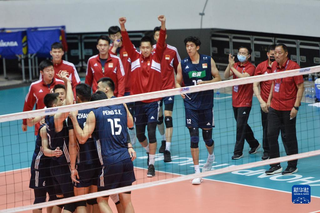 当日,在泰国佛统举行的2022年男排亚洲杯小组赛中,中国队以3比1击败巴林队。新华社发(拉亨摄)