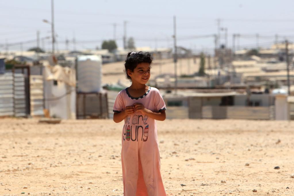 这是8月2日在约旦扎塔里叙利亚难民营拍摄的一名女孩。新华社发(穆罕默德·阿布·古什摄)