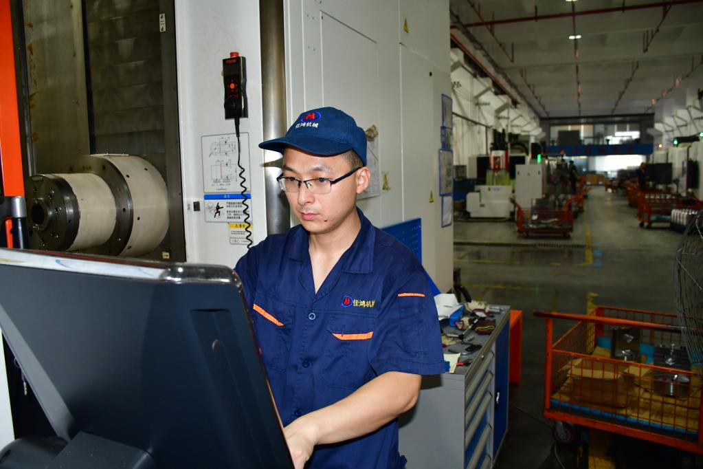 常德市佳鸿机械有限责任公司工人正在加工机械零部件。(受访者供图)