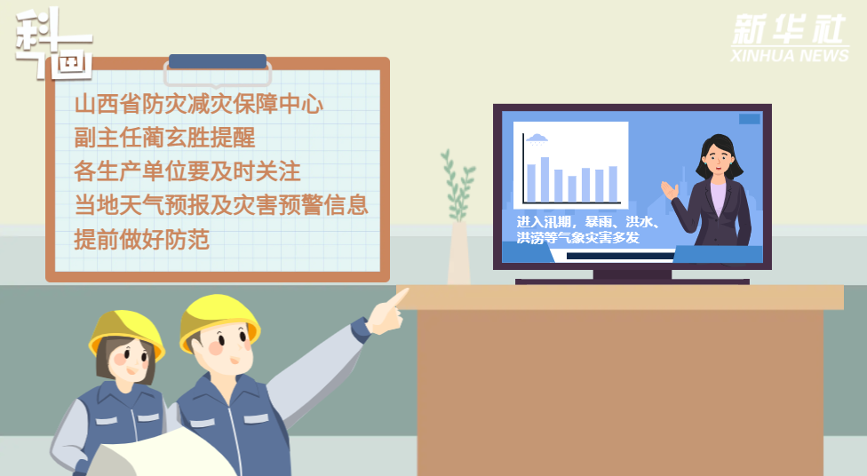 进入汛期,暴雨、洪水、洪涝等气象灾害多发。山西省防灾减灾保障中心副主任蔺玄胜提醒,汛期到来,各生产单位要及时关注当地天气预报及灾害预警信息,提前做好防范。
