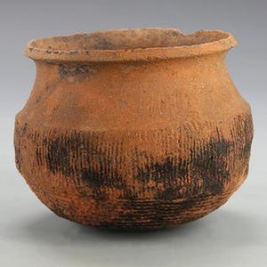 这是在石家及遇村遗址新发现战国、秦汉时期墓地中出土的陶釜。